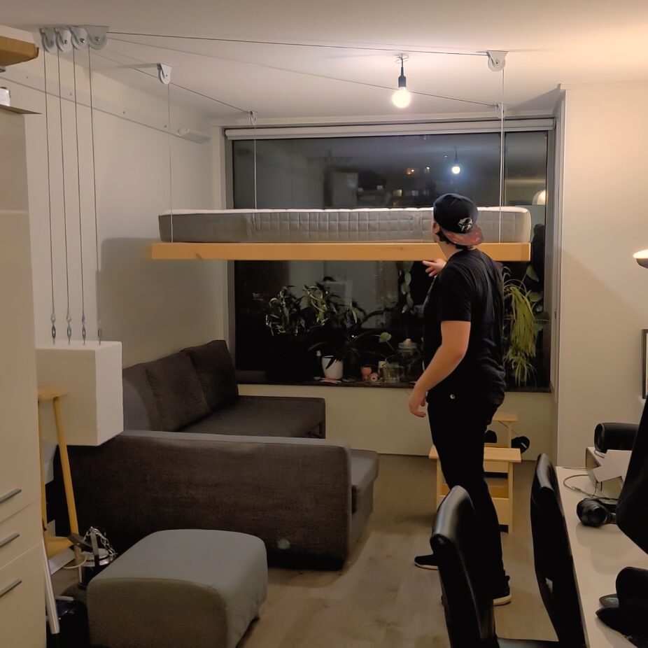 designed. At the time I lived together in a studio, which feels no different than a fully built bedroom. The lift bed turned out to work very well. After processing customer feedback from the test program, it is