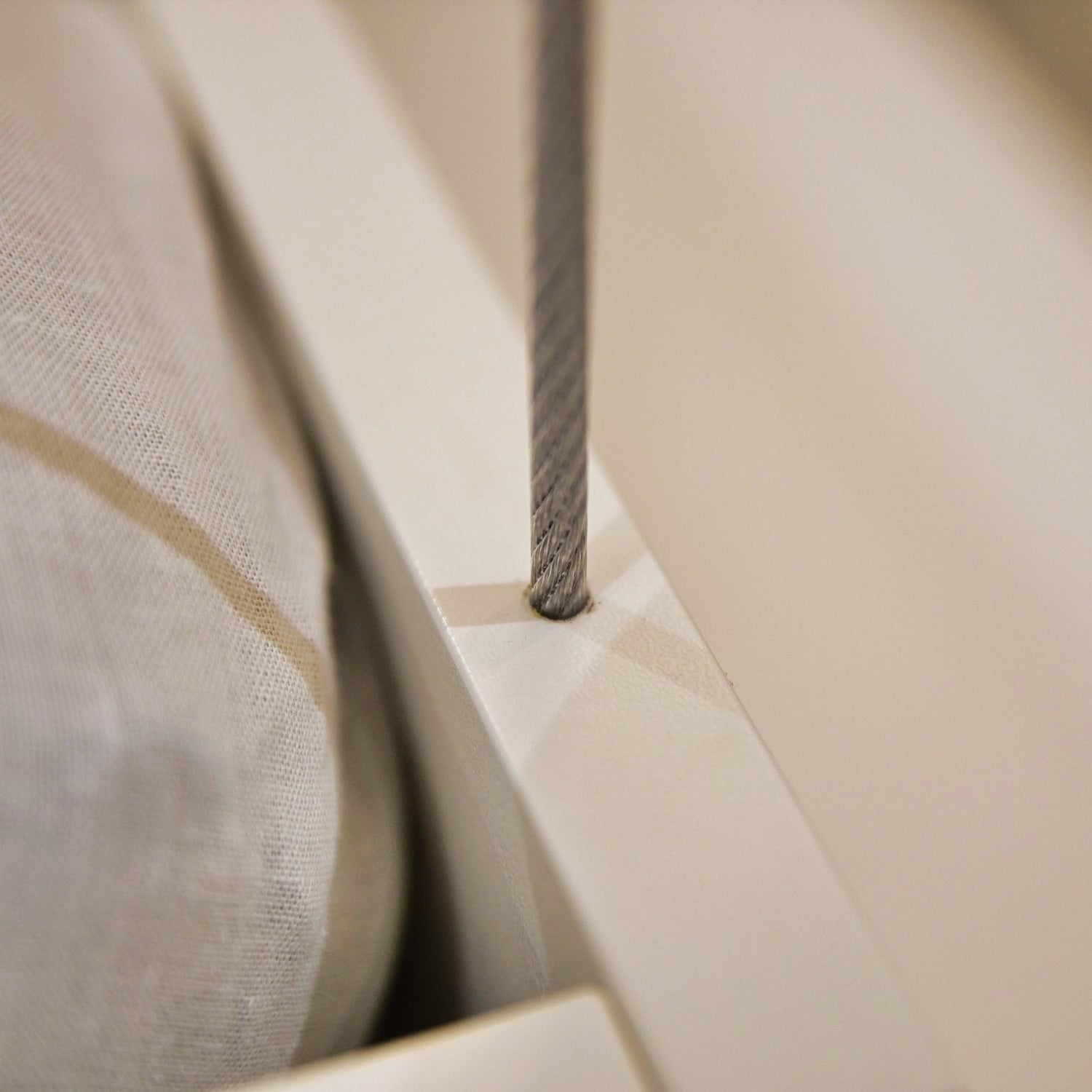 The location of the counterweight is completely independent of the location of the bed. It can therefore simply hang next to the bed, but it can also be hidden/built into a corner of the room (max 500cm distance between bed and counterweight). The space below and above the counterweight must be completely free.